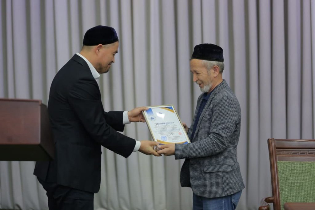 Тадбирда муфтий ҳазратлари Тошкент вилояти бош имом-хатиби Жасурбек домланинг динимиз равнақи йўлида олиб бораётган хайрли ишларини муносиб рағбатлантиб, ташаккурнома билан тақдирладилар.