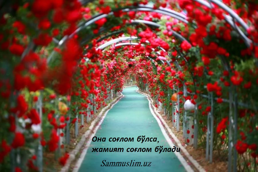 Эй аёллар жамоаси! Эрларингизга итоат қилганингиз, болаларингизга хизмат қилганингиз учун сизларга Аллоҳ таолонинг ҳузуридаги нарсаларнинг башоратини қабул қилинг! Сизлар бу дунёда мискин бўлсангиз ҳам, у дунёда анбиёларнинг хотинлари билан бирга жаннатга биринчи борганлардан бўласиз. Аллоҳ таоло сизларнинг кабирадан бошқа гуноҳларингизни мағфират қилади”, дедилар[6].