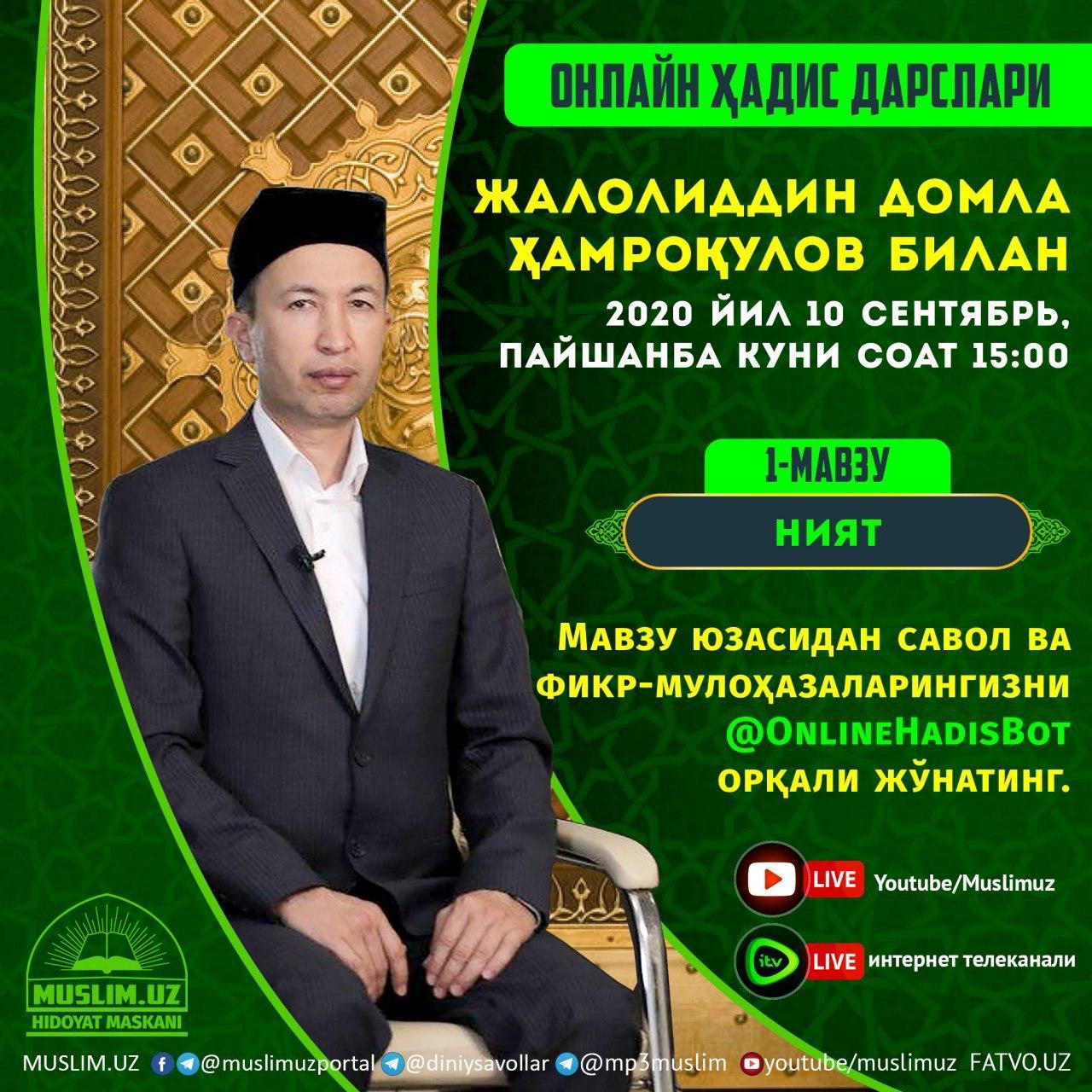 ? 2020 yil 10 sentyabr, payshanba kuni soat 15:00 dan boshlab, onlayn- hadis sharhi suhbatlarining ilk sonini quyidagi ijtimoiy tarmoqlarimiz orqali to‘g‘ridan-to‘g‘ri kuzating va bevosita ishtirokchisiga aylaning!