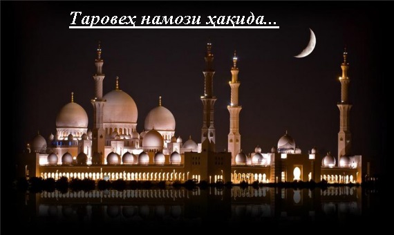 “Kim ramazon kechalarida turib, ibodat qilish sunnatligiga ishonib, savob umid etib ibodat qilsa, oldingi gunohlari kechiriladi” (Abu Hurayradan rivoyat qilingan).