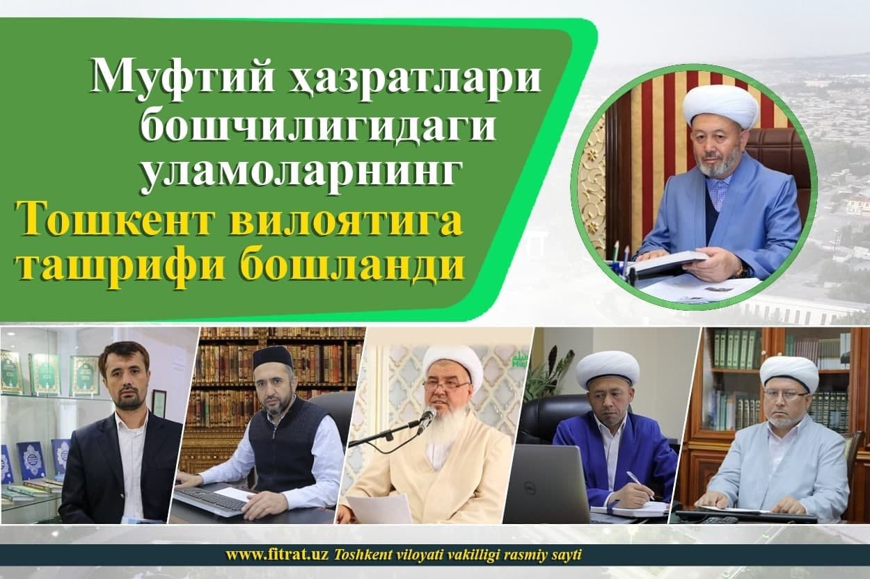 Bugun, 7 iyul kuni yurtimizning taniqli ulamolari Toshkent viloyati Toshkent va Yangiyo‘l tumanlariga tashrif buyurishadi.