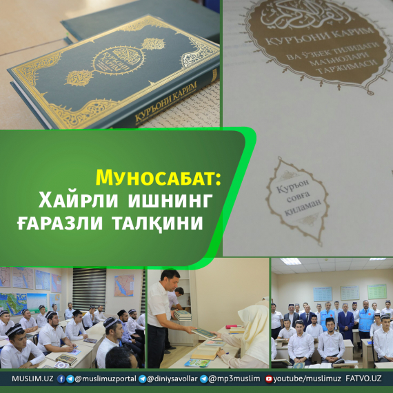 Shu kunlarda ba'zi internet tarmog‘ida “O‘ttiz ming o‘zbekcha-turkcha Qur'oni karim tarjima kitobi O‘zbekistonda tarqatildi” degan mazmundagi xabarlar keng tarqatilmoqda. Ayrim ijtimoiy tarmoq yurituvchilari xayriya tariqasida ulashilayotgan mazkur kitoblar do‘konlarda sotuvga chiqarilishi mumkinligi haqidagi asossiz axborotlarni ham yoyishga urinmoqdalar.