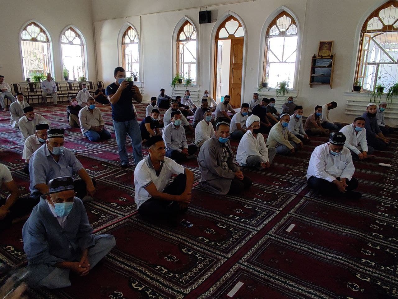 Shundan so‘ng mehmonlar tumandagi “Xo‘ja Abduraxmon” jome' masjidiga borishib, undagi shart-sharoitlar va masjid faoliyati bilan tanishdilar. Shu yerning o‘zida jamoat bilan peshin namozi ado etildi.