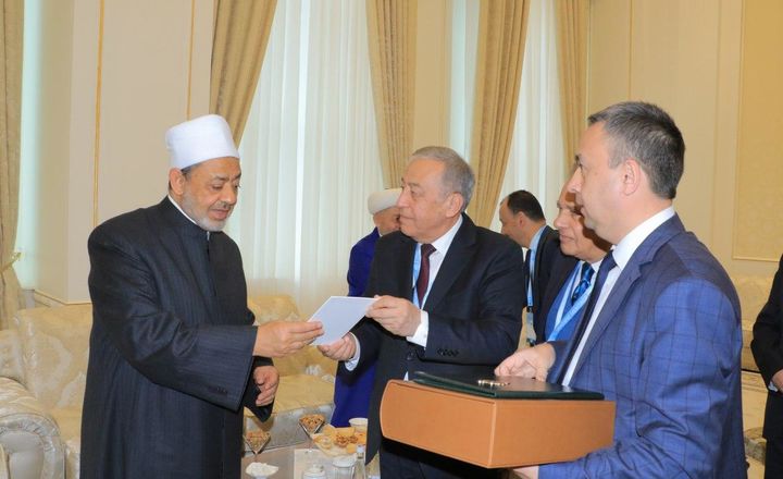 Tanaffus chog‘ida “Al-Azhar” majmuasi rahbariga O‘zbekiston Respublikasi Prezidenti Shavkat Mirziyoevning ezgu tilaklari yozilgan nomasi va Burhoniddin Marg‘inoniy “Hidoya” asarining XIII asrga oid nusxasi - faksimilesi topshirildi.