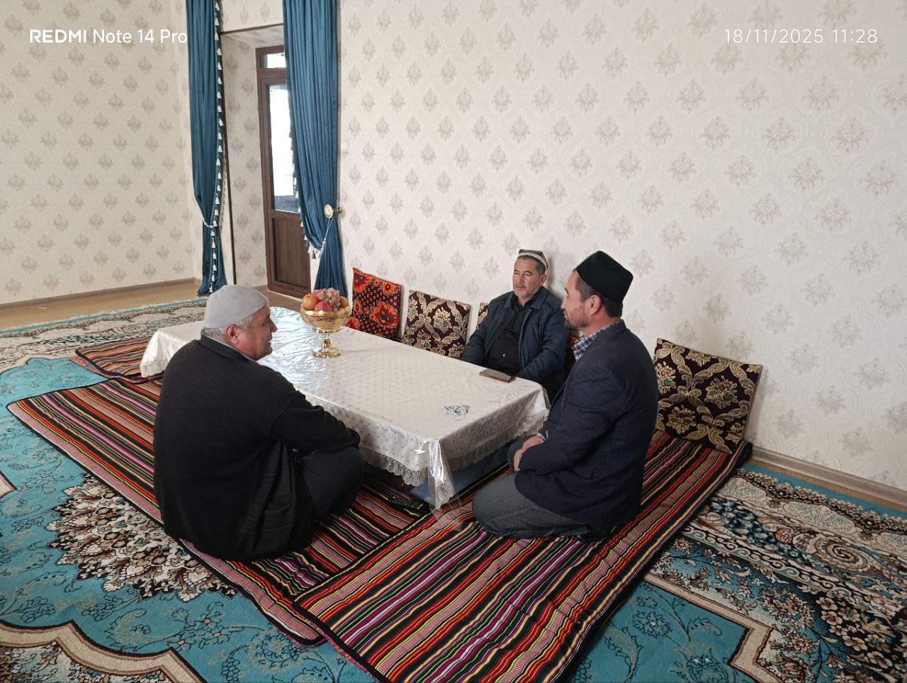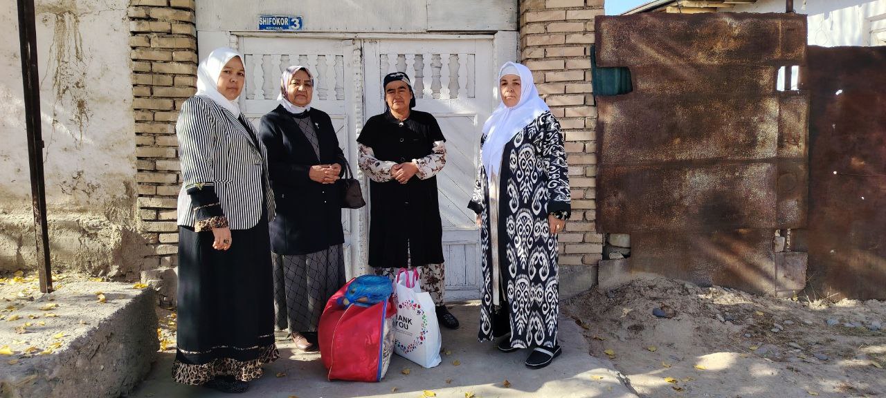 Tashriflar davomida har bir xonadonga oziq-ovqat mahsulotlari yetkazilib berildi, samimiy muloqot va ezgu duolar orqali muhabbat va minnatdorlik ruhi hukm surdi.