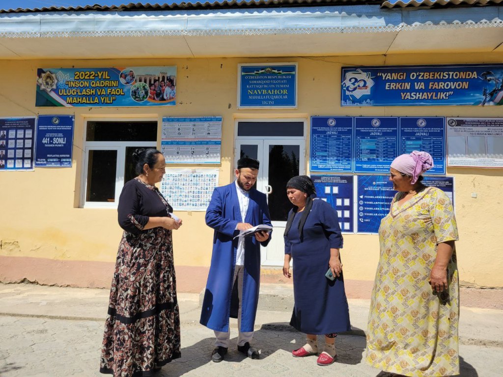 - Имом-хатиблар ташриф буюрган маҳаллалар сони: 31 та. Шундан 12 тасидамуаммолар борлиги аниқланди ва барчаси ижрога йўналтирилди;